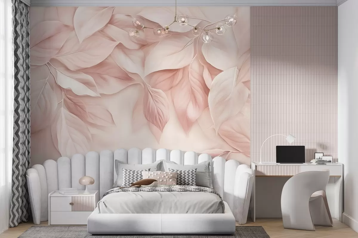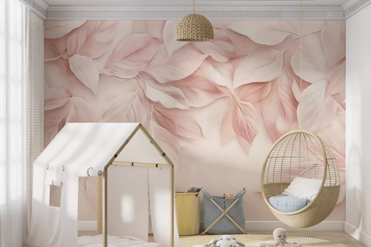 Fotomurales delicadas hojas rosas para el dormitorio de la niña Nr. w02549
