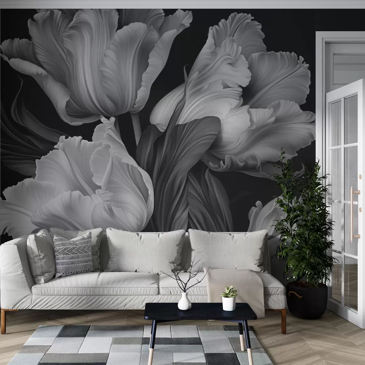 Fotomurales Tulipanes en blanco y negro en estilo fotorrealista Nr. w02557