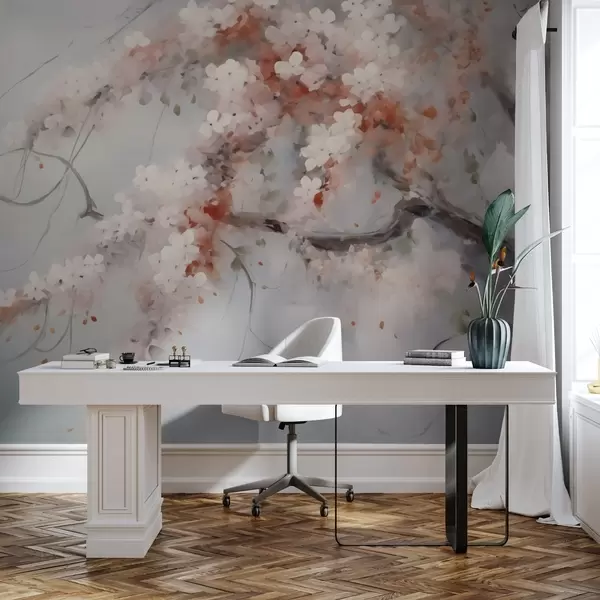 Fotomurales Rama abstracta con flores blancas y rojas imitación de pintura Nr. w02594