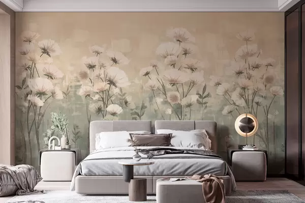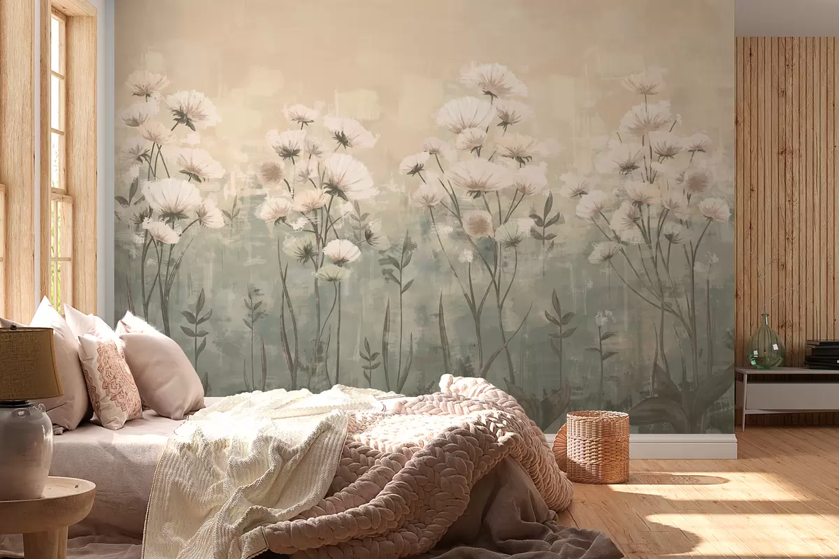 Fotomurales Delicadas flores silvestres con efecto de pinceladas en amarillo y beige Nr. w02629v1