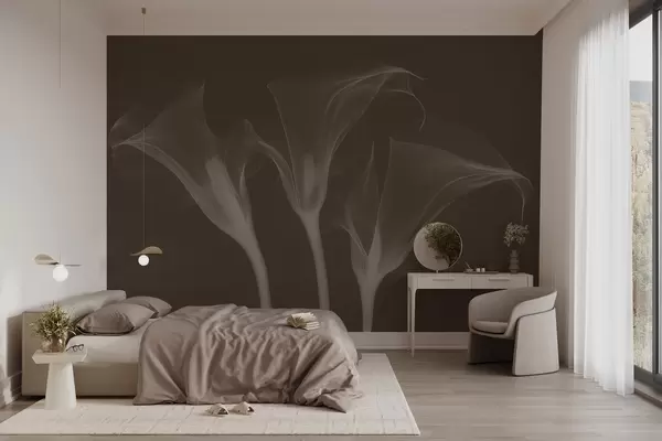 Fotomurales flores de Zantedeschia transparentes sobre fondo oscuro Nr. w02632v1