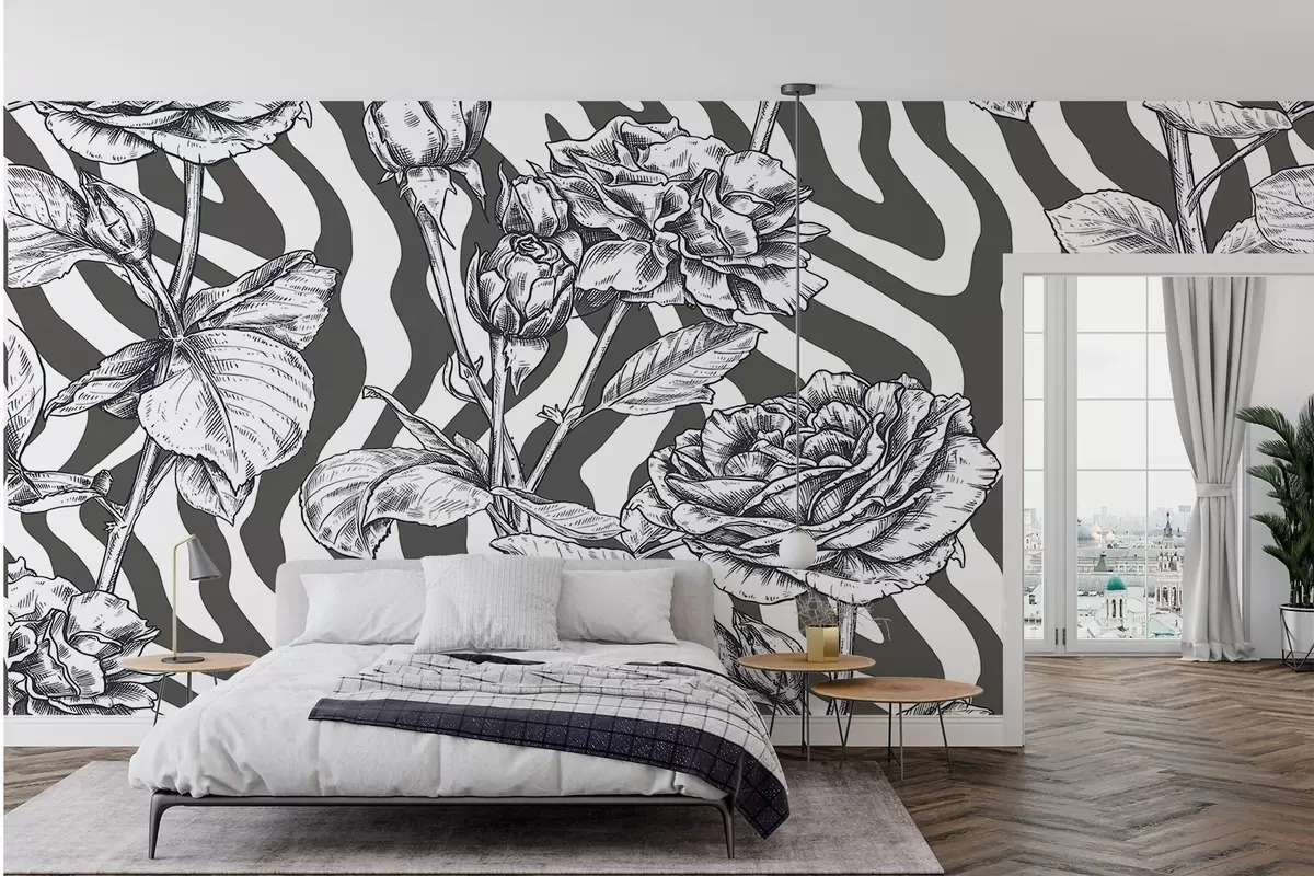 Fotomurales rosas sobre fondo de cebra Nr. w02692