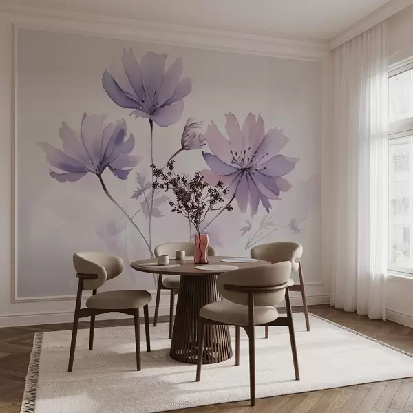 Fotomurales Delicadas flores rosa púrpura imitación de acuarela Nr. w02716