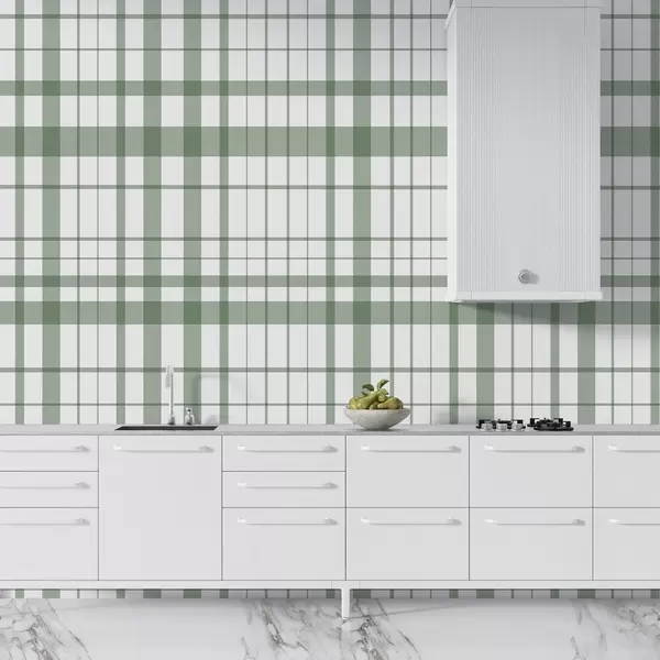 Fotomurales Diseño minimalista a cuadros con líneas finas y verdes sobre fondo blanco, austeridad geométrica. Nr. w02852v3