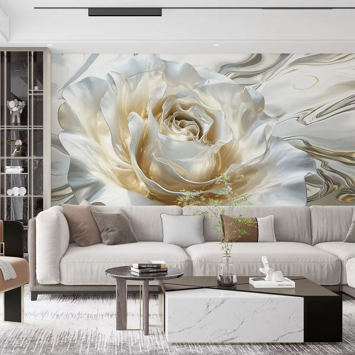 Fotomurales Rosa grande blanca nacarada de estilo metálico Nr. w02870