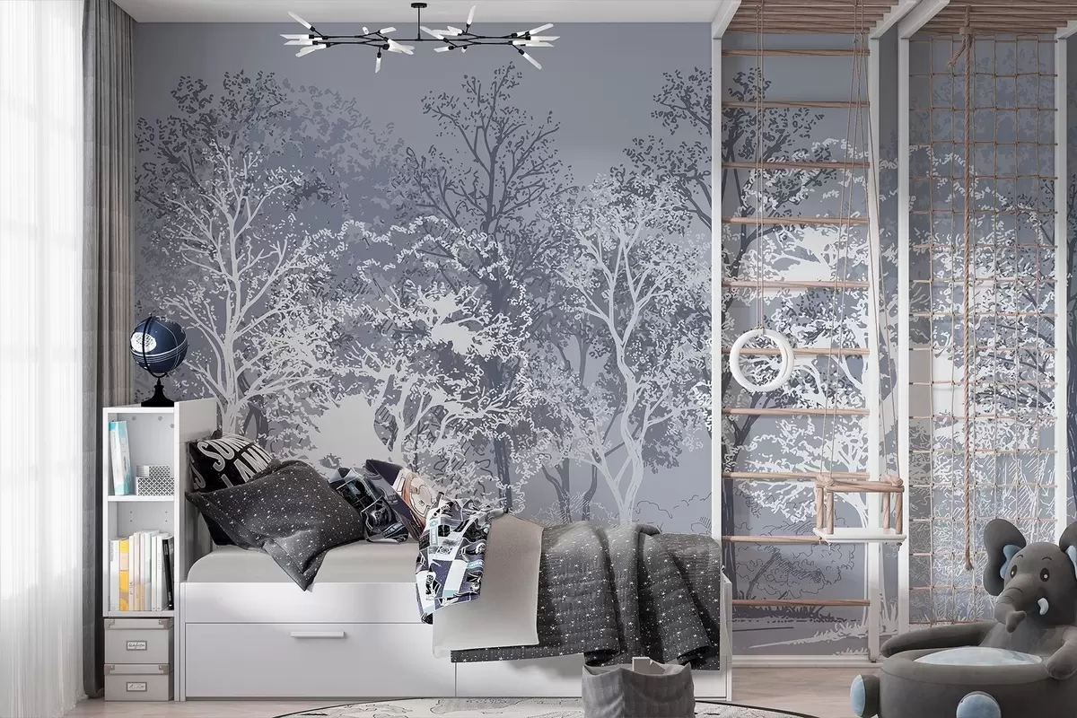 Fotomurales Árboles en el bosque, minimalismo, naturaleza, paleta de colores azules Nr. w02930v2