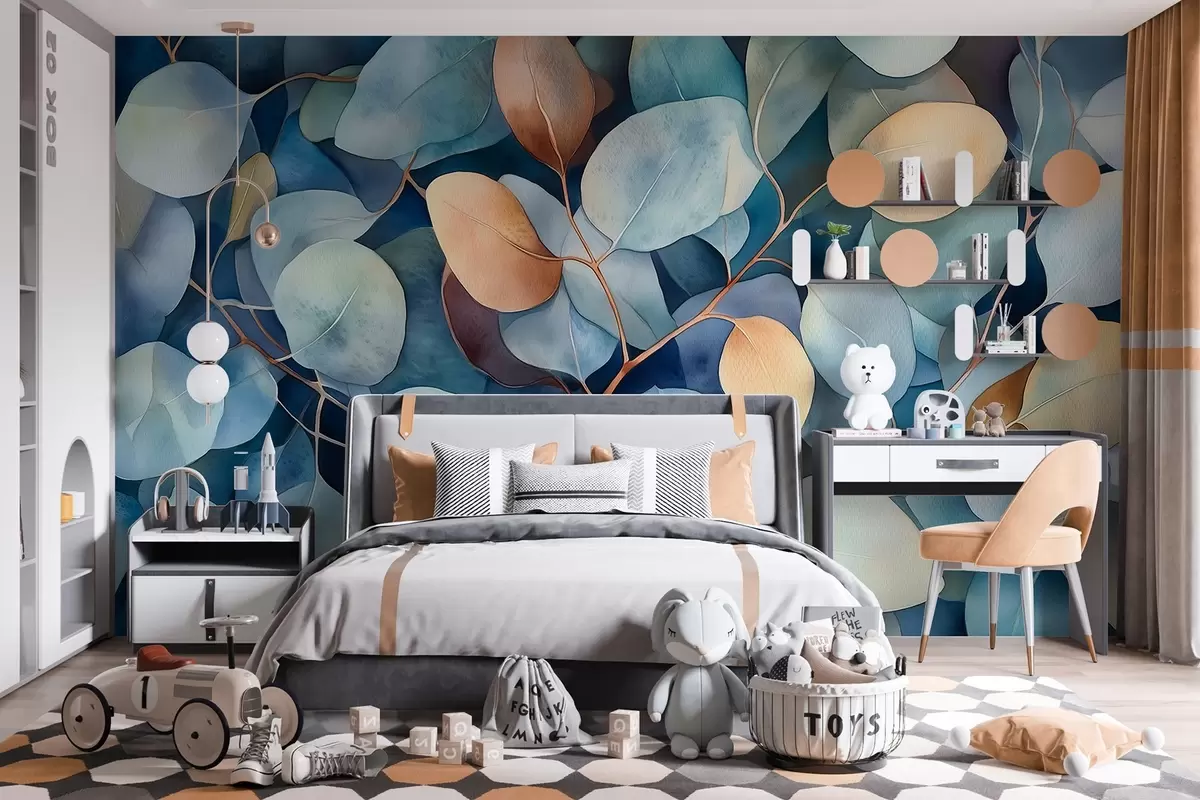 Fotomurales Hermosas hojas de eucalipto, patrón floral, dibujo estilo acuarela Nr. w02939