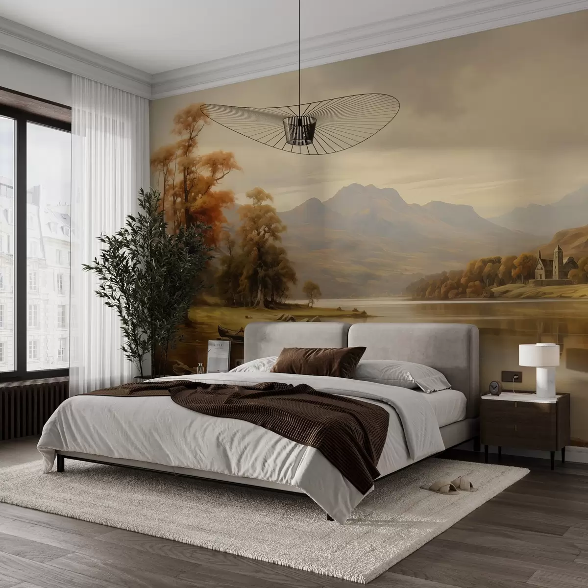 Fotomurales Paisaje de acuarela pintado en colores cálidos Nr. w02971