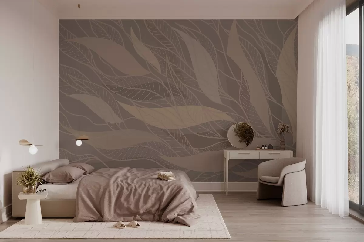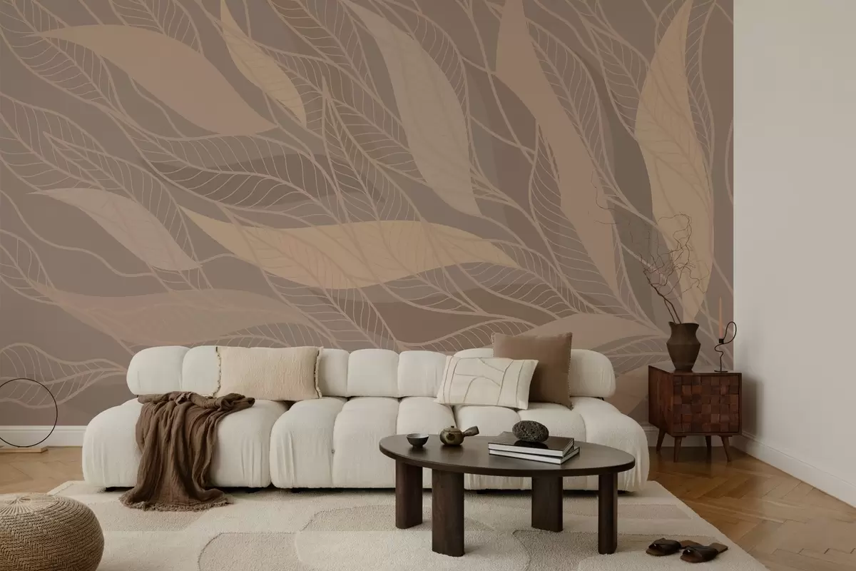 Fotomurales hojas abstractas en beige y colores cálidos Nr. w03117