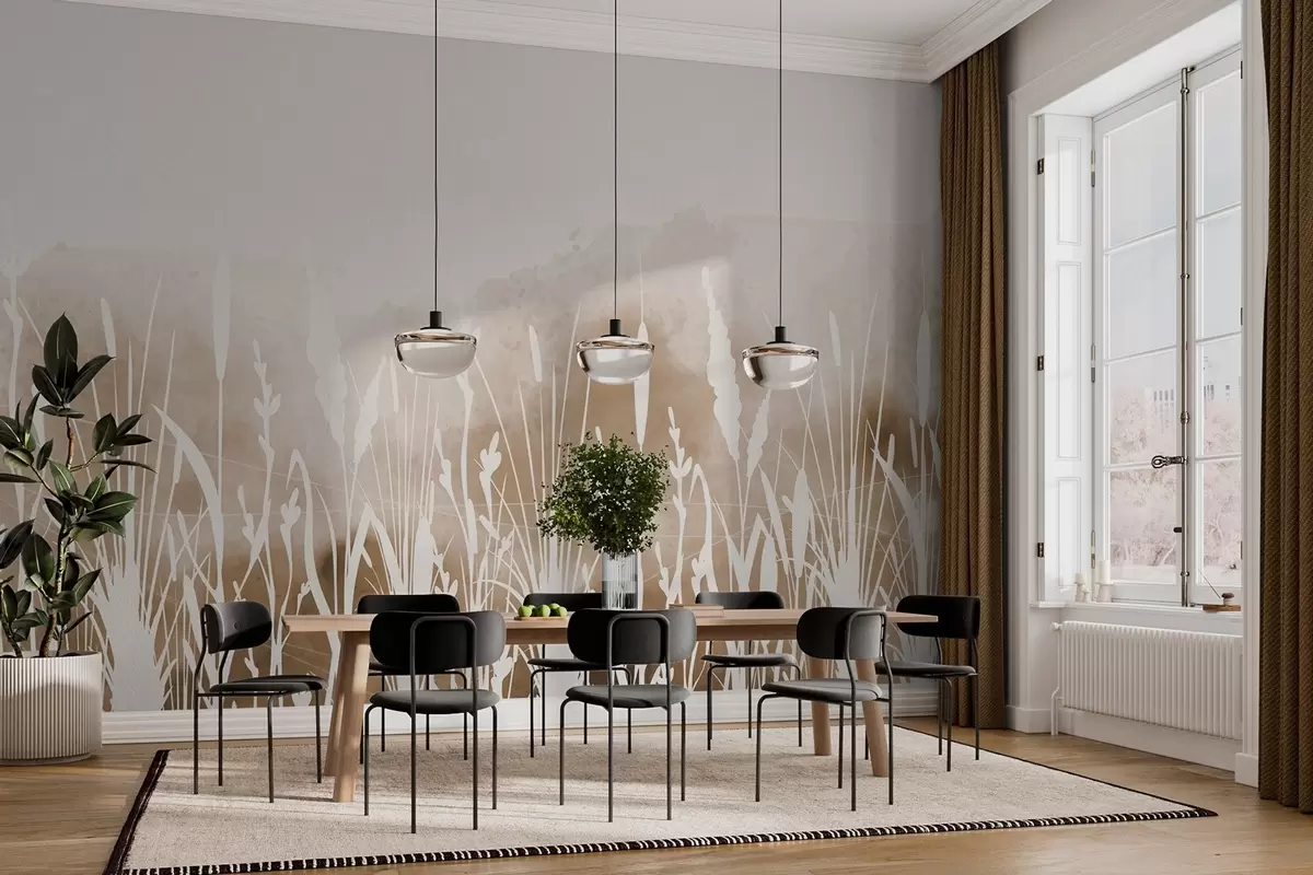 Fotomurales Silhouettes di piante di prato nantu à u fondu chjaru Nr. w03134