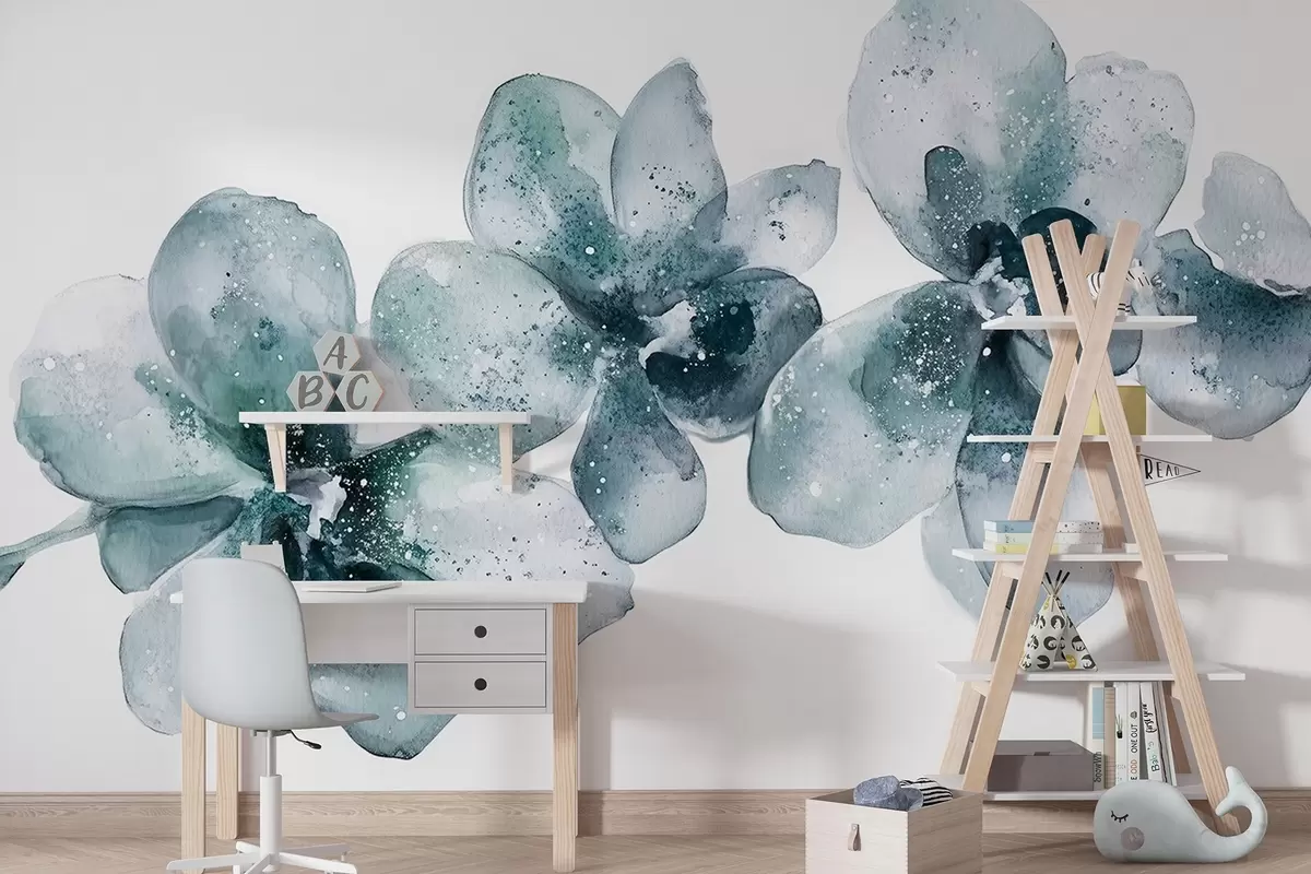 Fotomurales Flores de orquídea estilo acuarela, colores aguamarina Nr. w03163v1