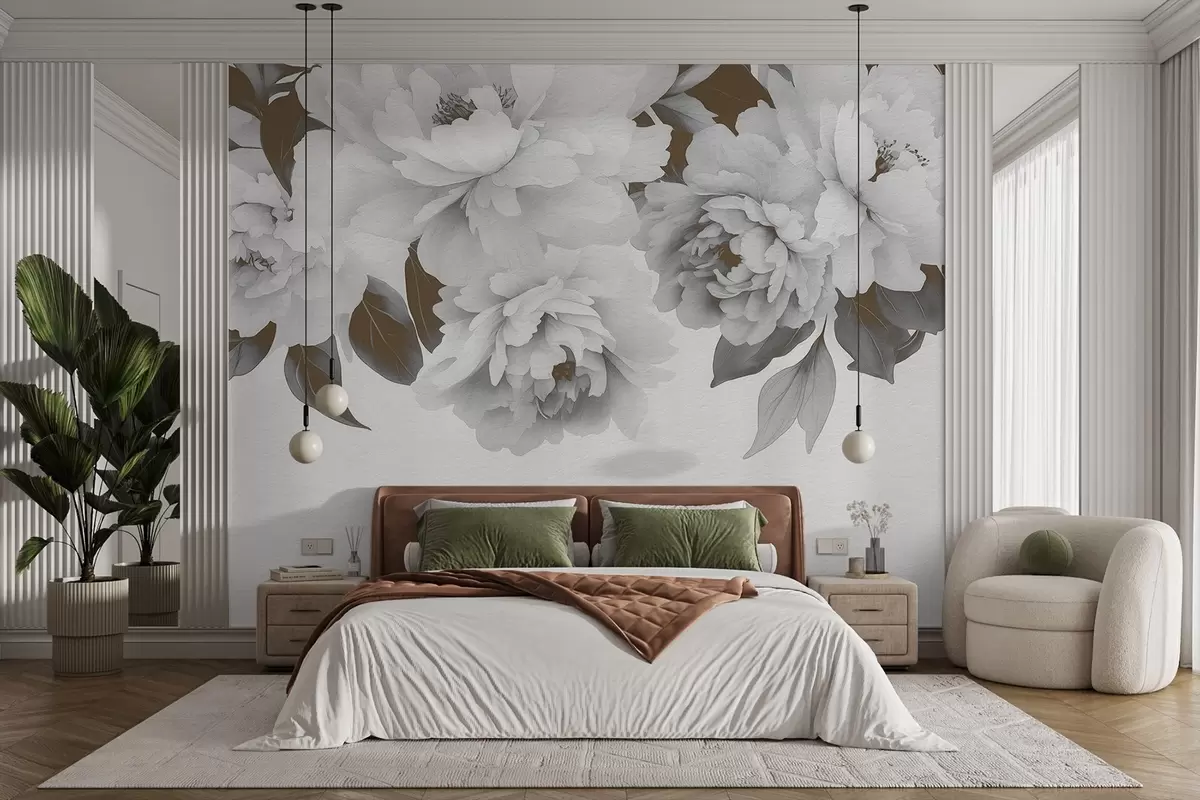 Fotomurales Delicadas peonías vintage en acuarela Nr. w03317v1