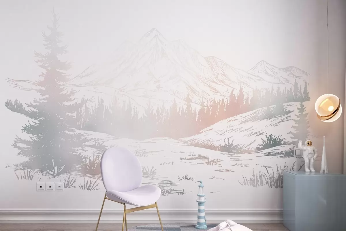 Fotomurales Paisaje de montaña con pinos, bosque, naturaleza, colorido Nr. w03344v4