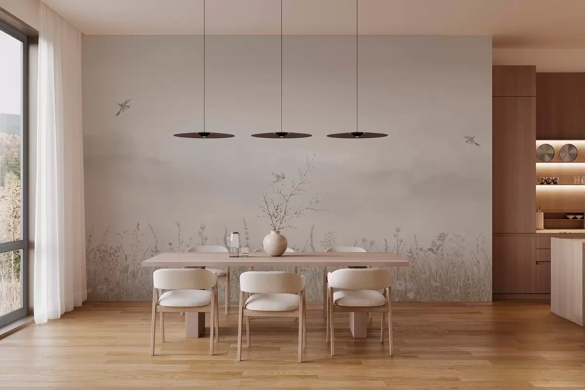 Fotomurales Flores silvestres y cielo brumoso en tonos beige Nr. w03391v2