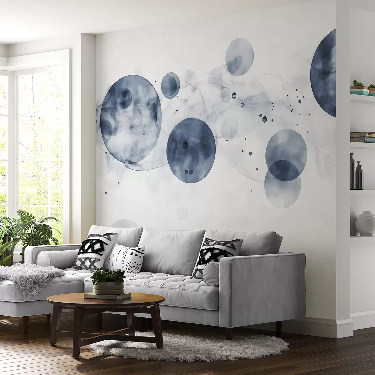 Fotomurales Círculos estilo acuarela, abstracción, etéreo, arte fluido, colores grises Nr. w03405