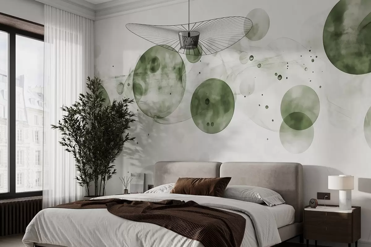 Fotomurales Círculos estilo acuarela, abstracción, etéreo, arte fluido, colores verdes Nr. w03405v1