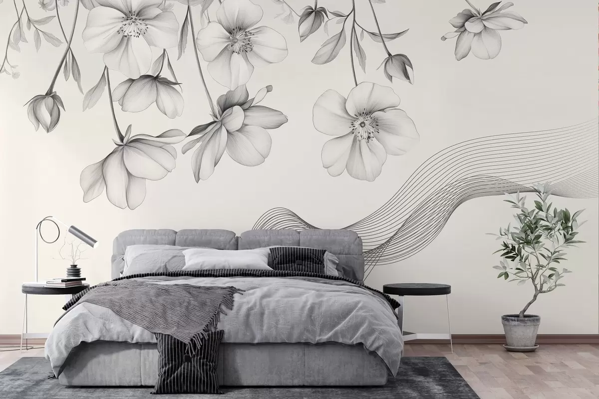 Fotomurales flores y líneas gráficas sobre fondo claro Nr. w03454