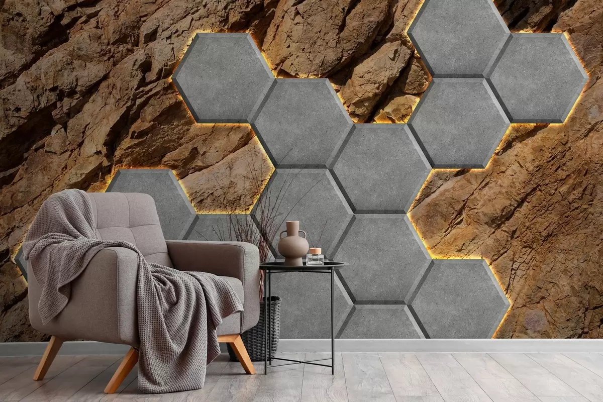 Fotomurales imitación de fuegos de hormigón sobre el fondo de una roca Nr. w03456