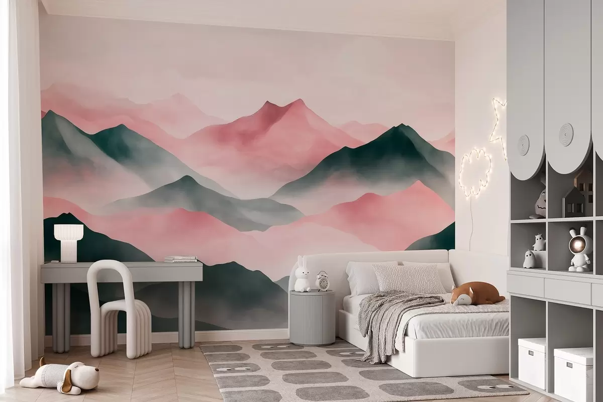 Fotomurales Paisajes de montaña, estilo acuarela, niebla, rosa y gris Nr. w03548v1