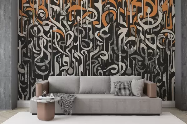 Fotomurales Diseño de arte callejero con naranja y gris Nr. w03607