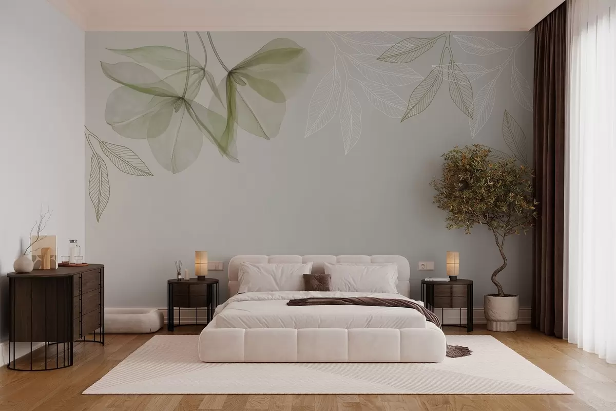 Fotomurales delicadas flores y hojas translúcidas en tonos caqui Nr. w03616v2
