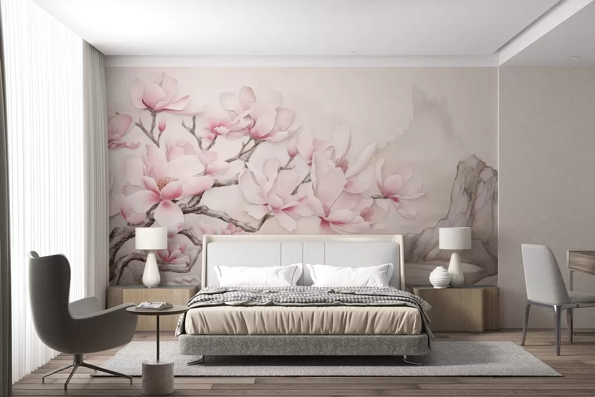 Fotomurales Acuarela rama de magnolia sobre una roca Nr. w03655