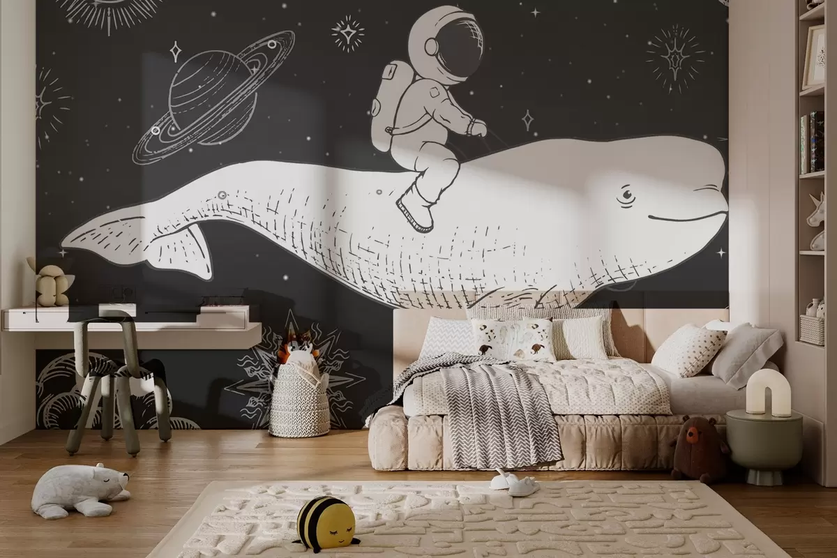 Fotomurales Ballena espacial con astronauta Nr. w03687