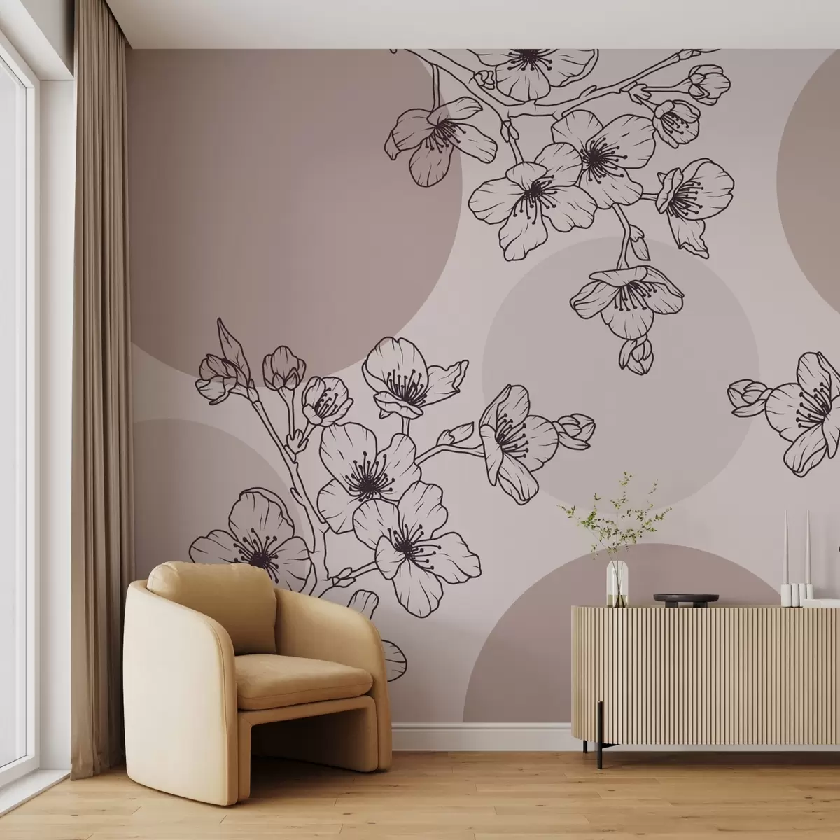 Fotomurales Ramas con flores sobre círculos de color en tonos marrones Nr. w03712
