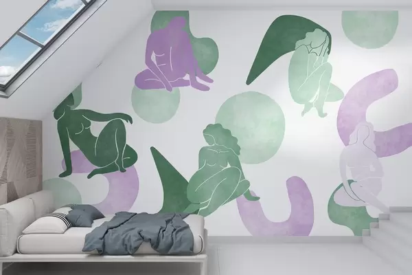 Fotomurales Abstracciones geométricas con siluetas femeninas, estilo boho, morado, verde Nr. w03753v4