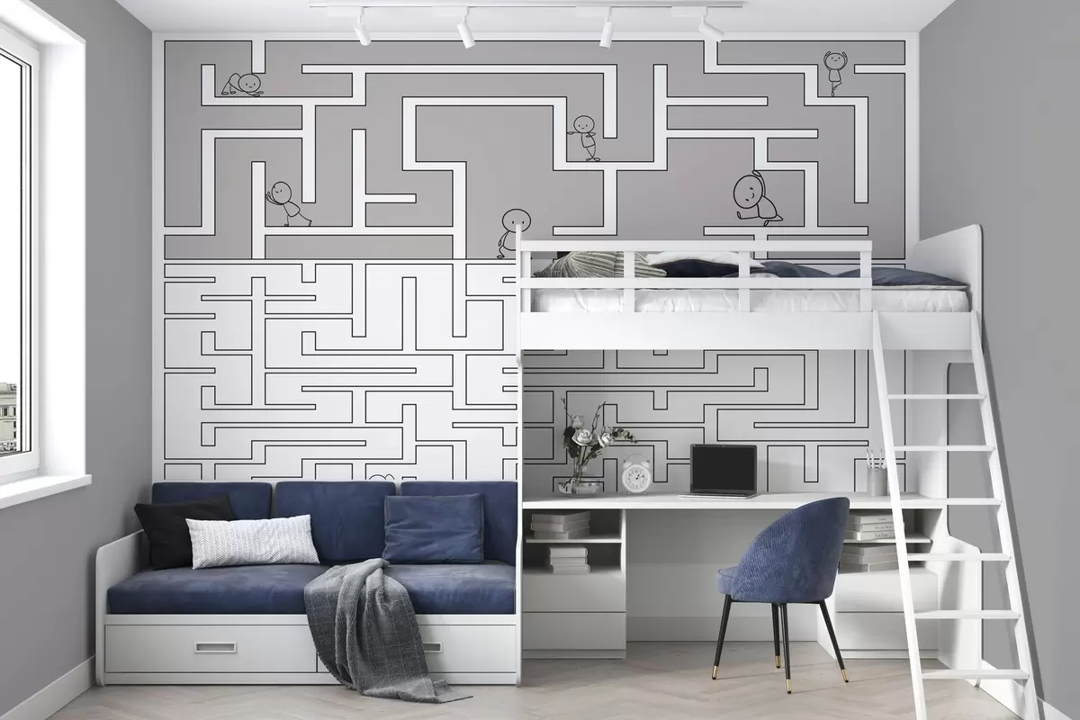 Fotomurales Laberinto en gris y blanco Nr. w03873v1