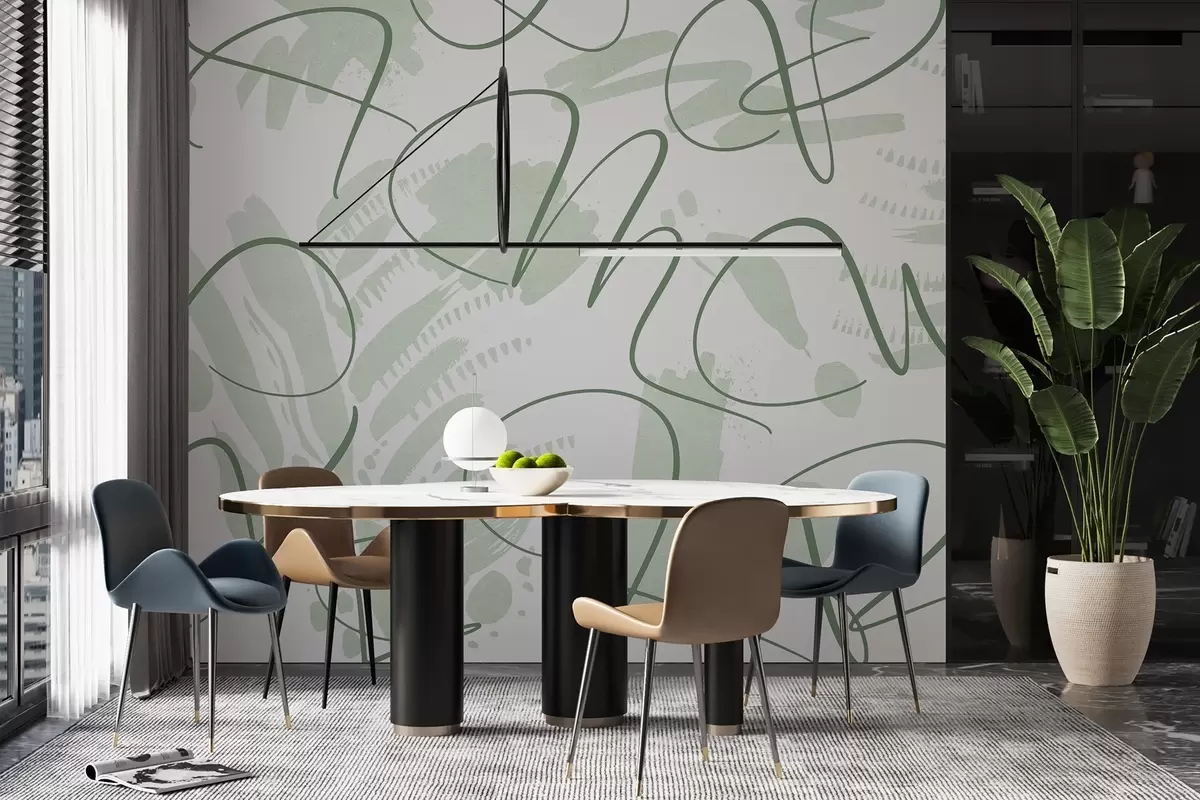 Fotomurales Abstracción caligráfica con letras, pinceladas, color verde Nr. w03913v3