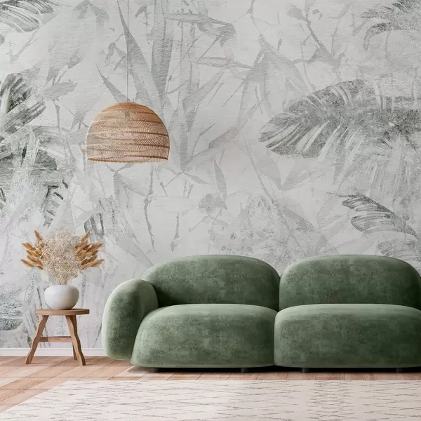 Fotomurales Abstracción floral en estilo grunge con imitación de abrasión, tonos verdes Nr. w03926v2