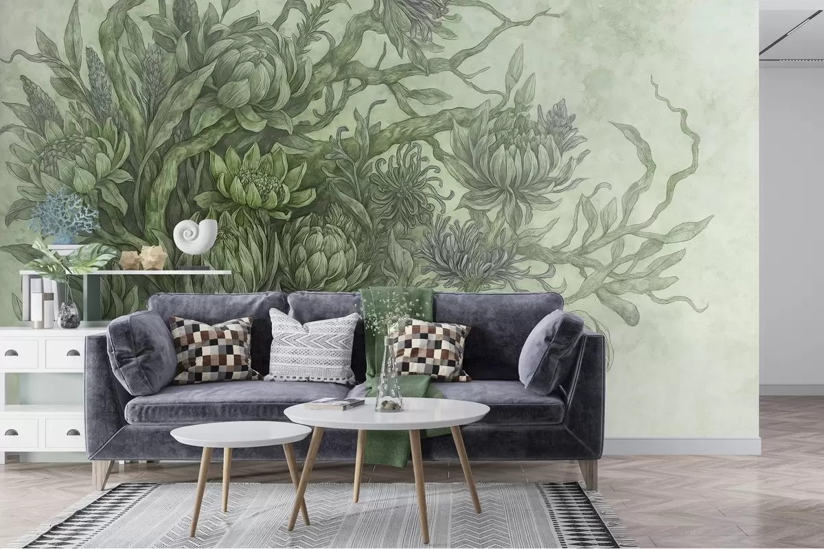 Se puede limpiar suavemente con una esponja suave. Los murales de pared con recubrimiento de barniz pueden limpiarse con agua.