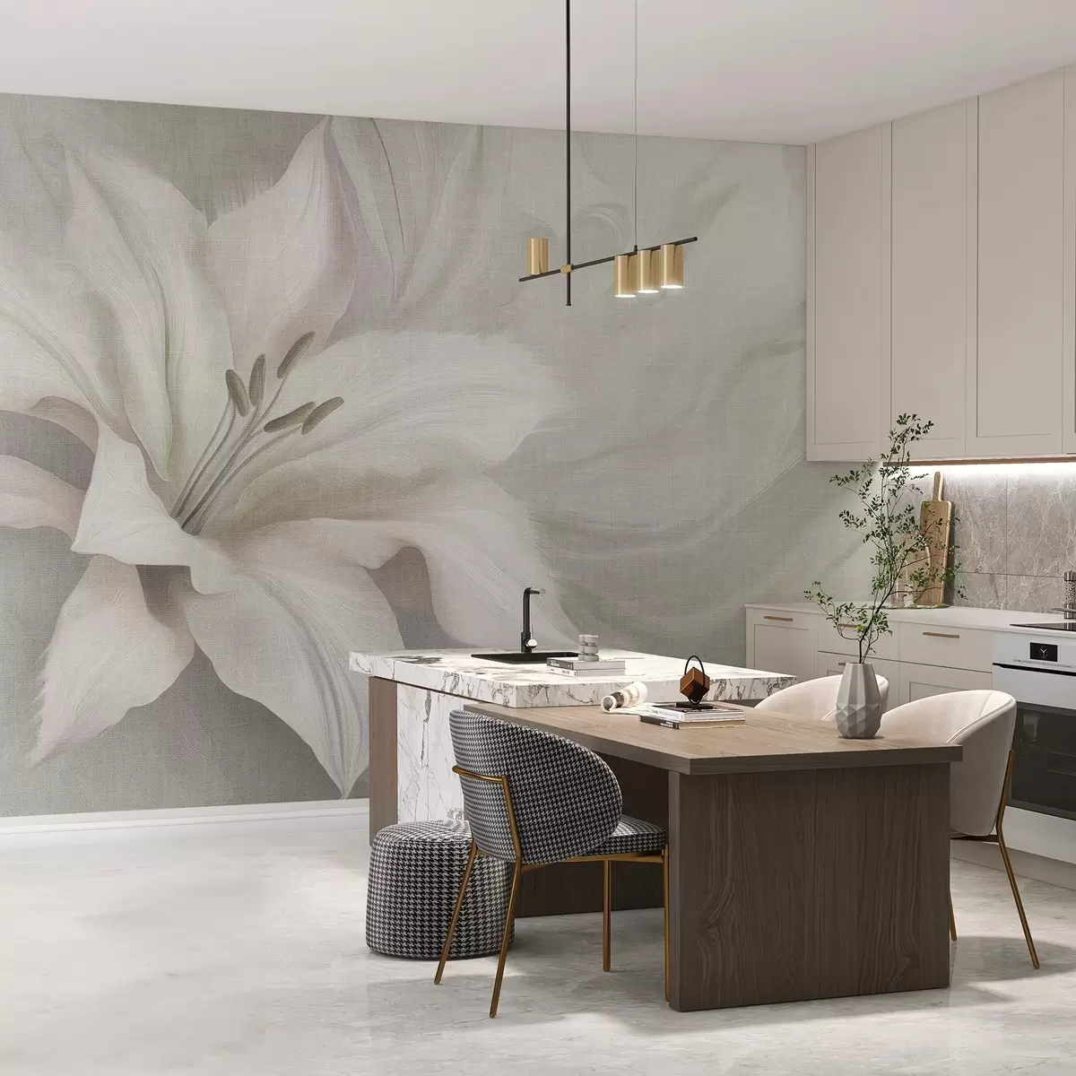 Fotomurales Flor de lirio abstracción fluida, floral, colores grises Nr. w04006v2