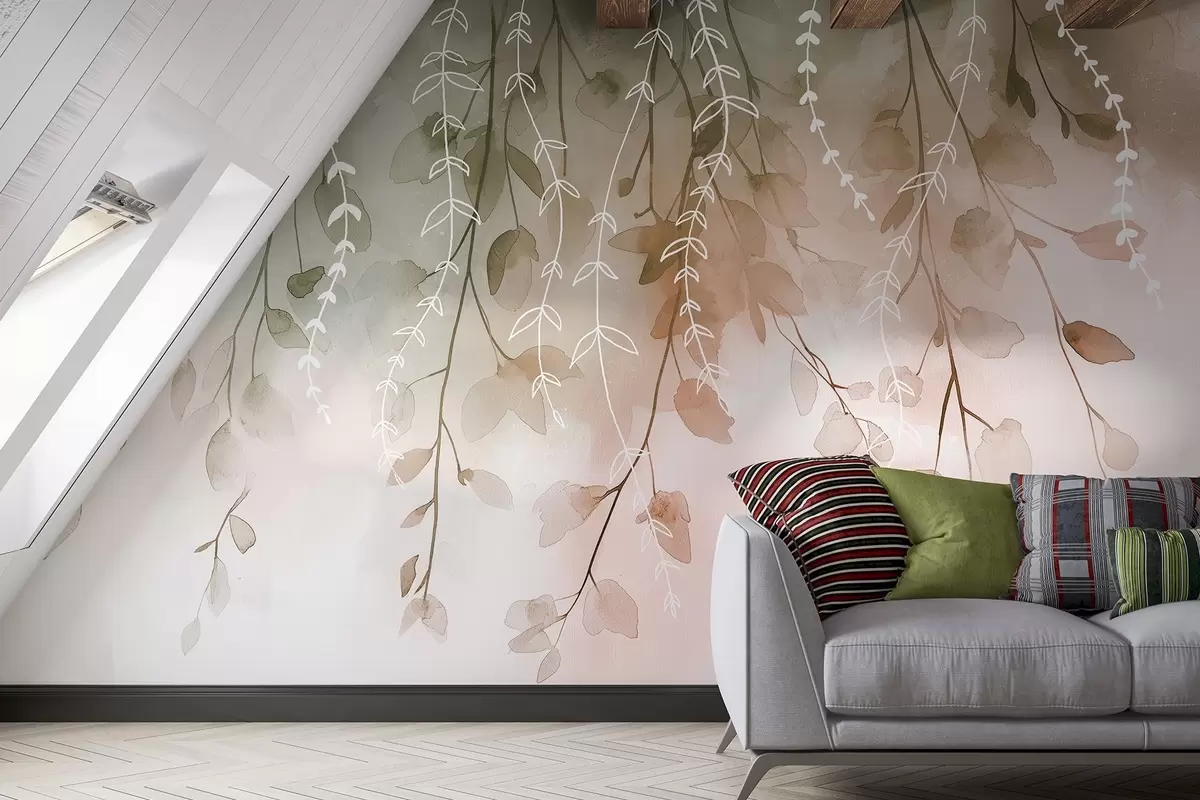 Fotomurales Ramas con hojas en estilo acuarela, colores naturales de otoño Nr. w04007v1
