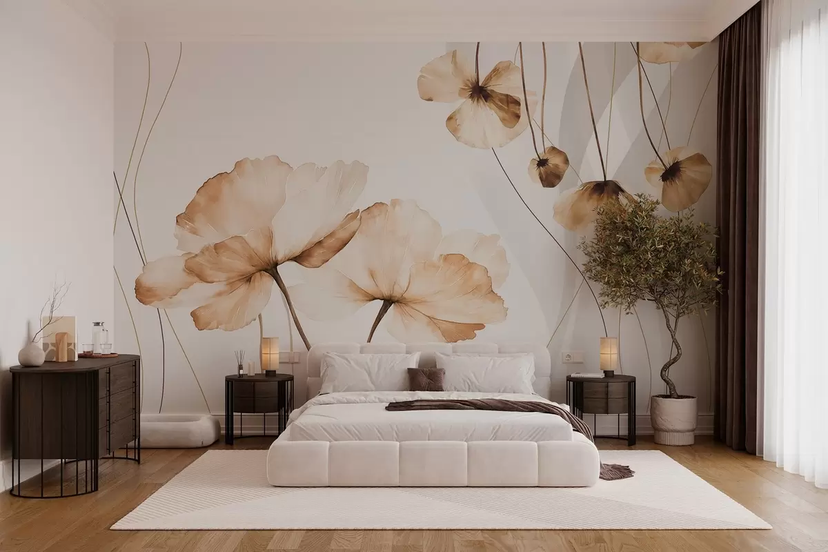 Fotomurales flores estilo acuarela en tonos marrones Nr. w04026