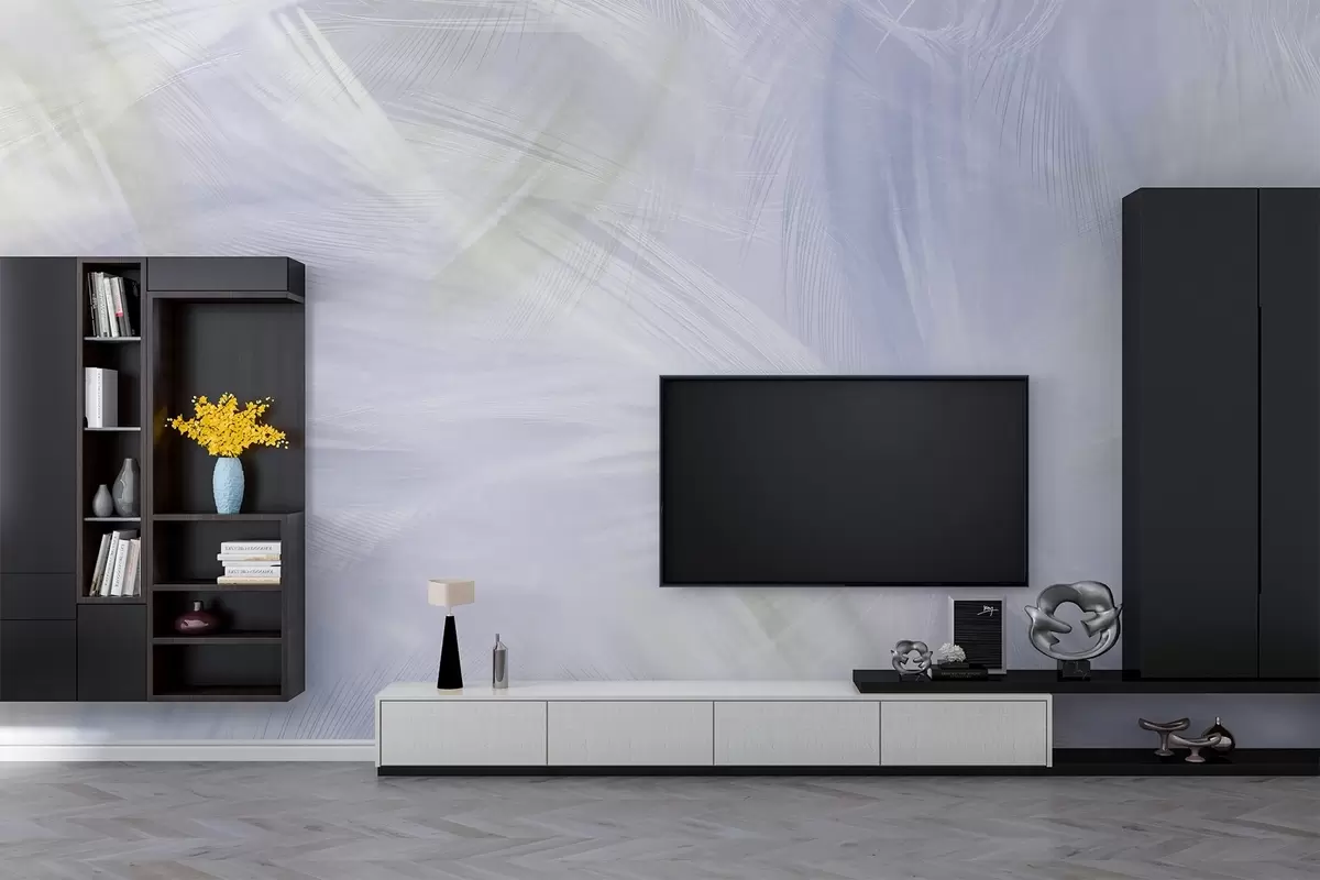 Fotomurales plumas vaporosas en tonos beige y azul Nr. w04071v1
