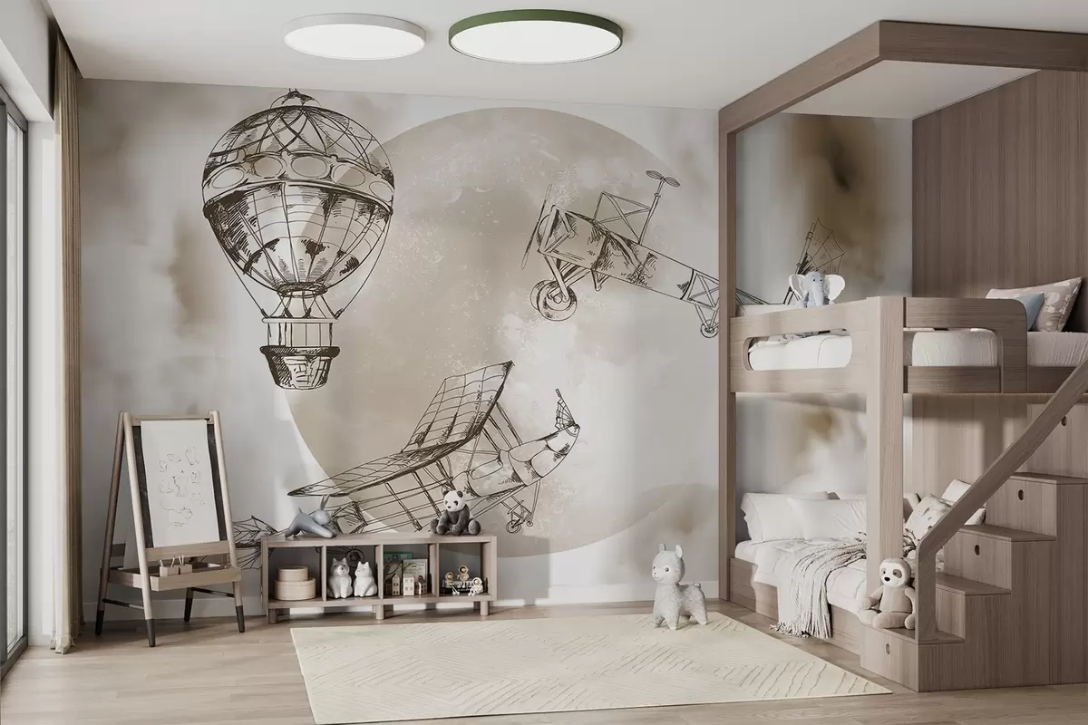 Fotomurales Aviones retro sobre el fondo de la luna y las nubes Nr. w04085v1