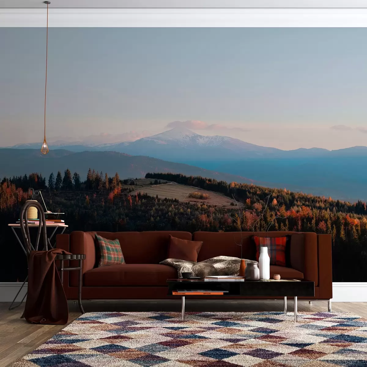 Fotomurales Montañas de los Cárpatos, textura al óleo, bosque otoñal, cielo al atardecer Nr. w04098