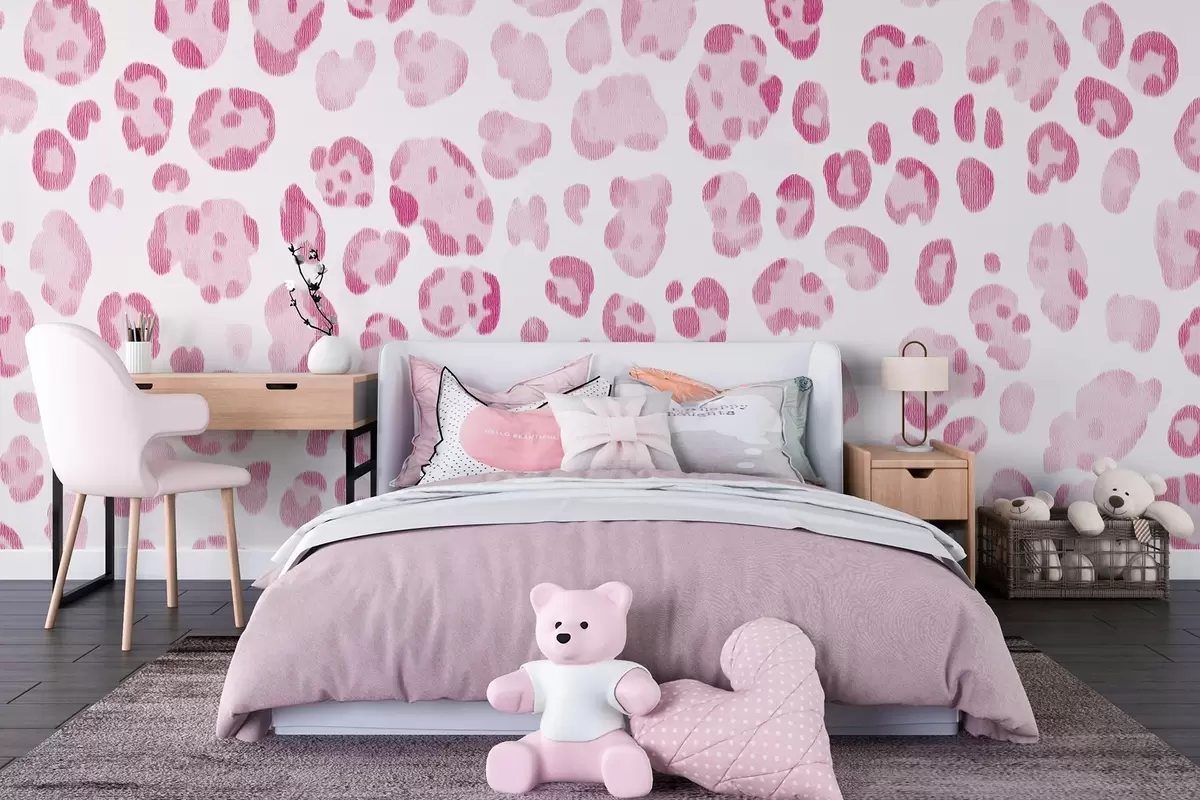 Fotomurales Estampado de leopardo, textura de lana, color rosa Nr. w04112v2