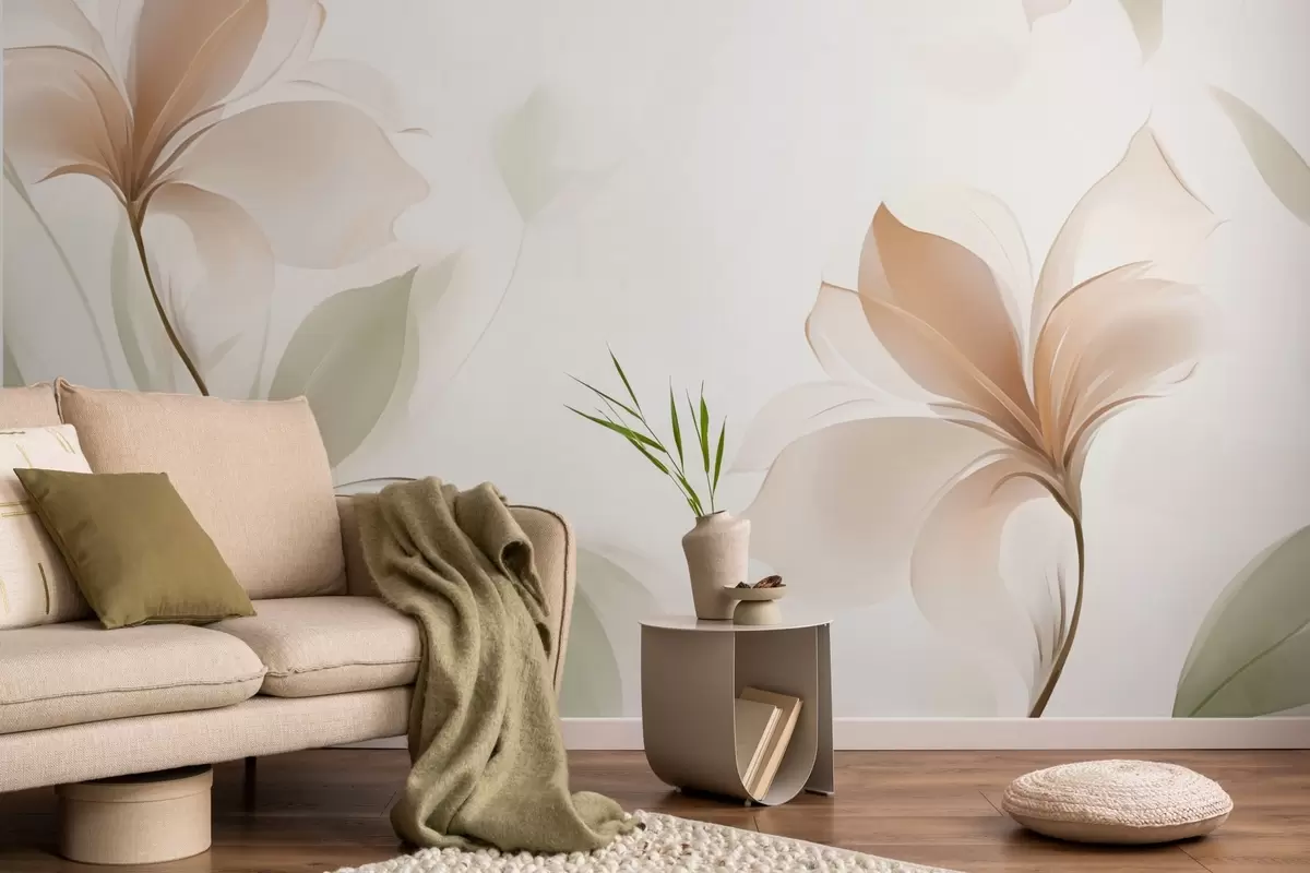 Fotomurales Flores transparentes en cálidos tonos beige y rosa Nr. w04397