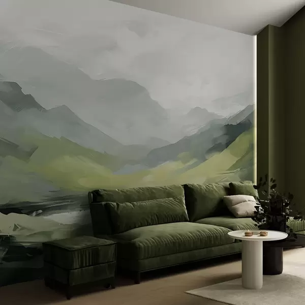 Fotomurales Paisaje montañoso abstracto en tonos verdes Nr. w04447