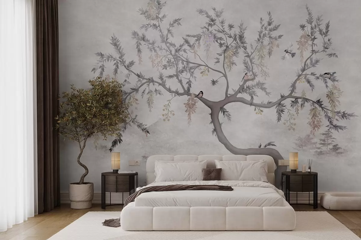 Fotomurales Rama de árbol con pájaros en estilo oriental Nr. w04456