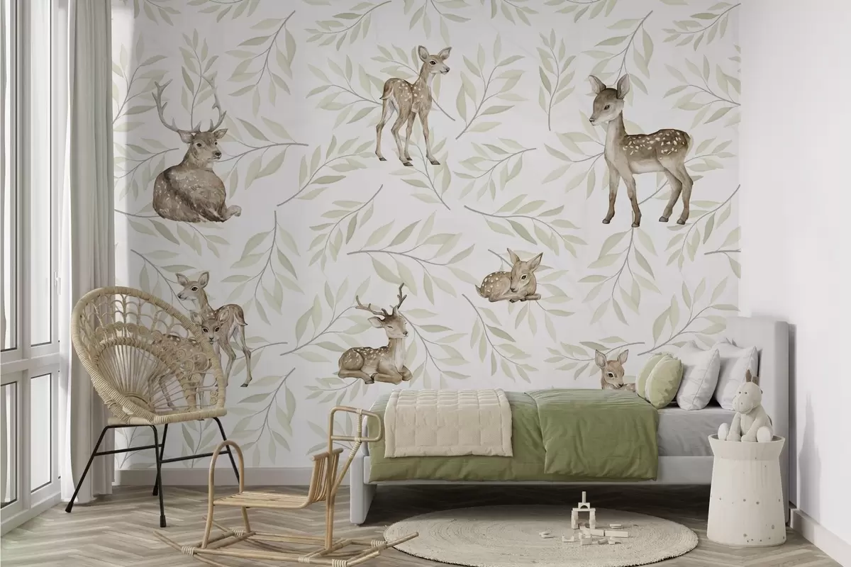 Fotomurales Cervatillos entre hojas verdosas sobre fondo blanco Nr. w04461v1