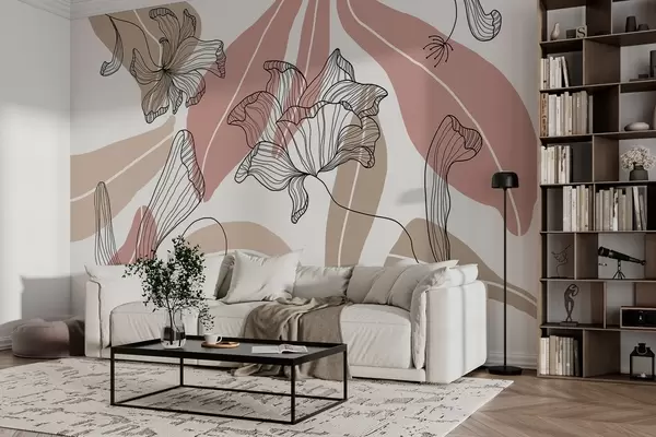 Fotomurales hojas y flores abstractas en tonos empolvados y beige Nr. w04499