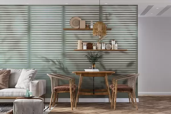 El barnizado consiste en cubrir el papel pintado acabado con una fina capa de barniz transparente. Este proceso aumenta la solidez y la resistencia a la humedad del papel pintado. Además, los papeles pintados barnizados pueden lavarse con una esponja húmeda para facilitar su limpieza.