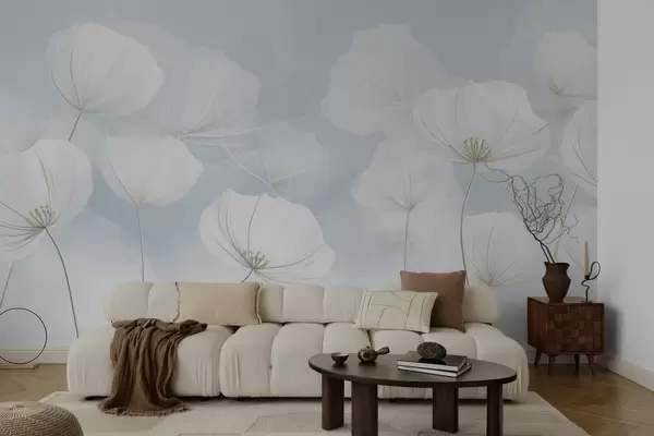 Fotomurales Flores blancas y aireadas sobre fondo azul Nr. w04580