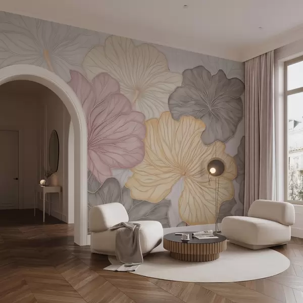Fotomurales Hojas grandes de color pastel con nervaduras finas Nr. w04612