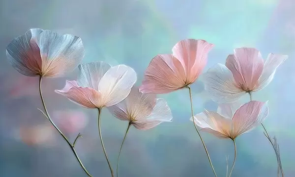 Fotomurales Pétalos transparentes en tonos rosa pastel y azul Nr. w04621