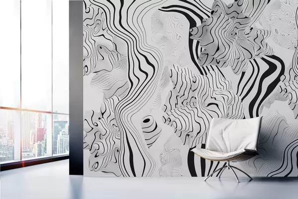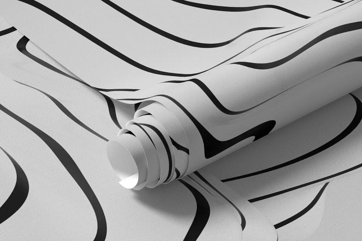 Fotomurales formas orgánicas abstractas en estilo 3D en tonos blancos y grises con rayas negras Nr. w04627